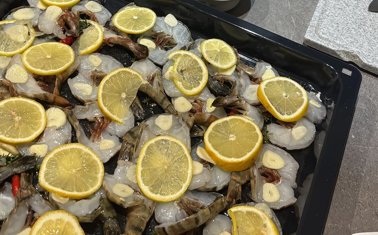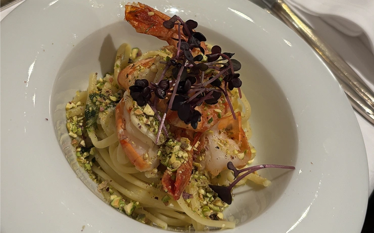 Zwischengang: Zitronen-Linguine mit Black-Tiger-Garnelen und Pistazien